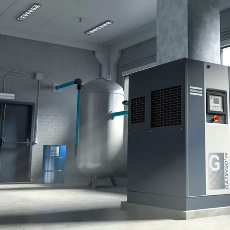 Einige Luftkompressoren sind „tankmontiert“, was bedeutet, dass sie als komplette Einheit geliefert und oben auf dem Luftaufnahmetank installiert werden. Der Einsatz von Tank-Luftkompressoren spart nicht nur Platz, sondern reduziert auch die anfänglichen Installationskosten, die für die Installation einzelner Trockner erforderlich sind. Diese Konfiguration ist bei kleinen Luftkompressoren sehr verbreitet und die Ausgangsleistung beträgt normalerweise nicht mehr als 26 Kilowatt (oder 35 PS). Große Luftkompressoren eignen sich nicht für Tankinstallationen, da dies zu einem kopflastigen Aufbau führen würde, der möglicherweise ein Sicherheitsrisiko darstellt.