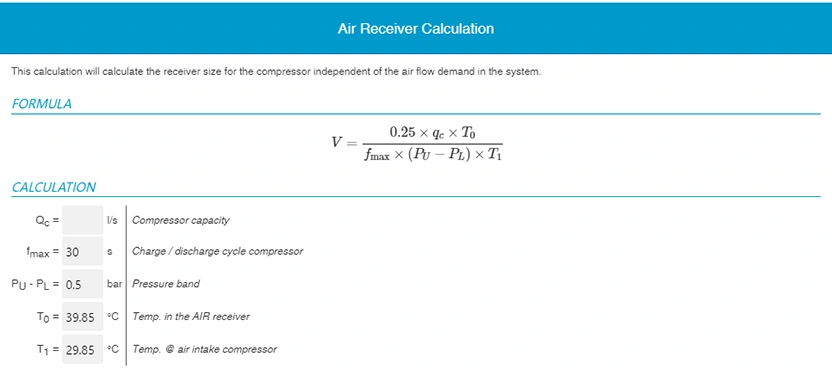 Minimierung von Druckschwankungen/-abfällen: Der Luftaufnahmetank wird verwendet, um Druckschwankungen zu minimieren, die den Produktionsprozess und die Produktqualität beeinträchtigen können. Bei der Auswahl des richtigen Luftaufnahmebehälters für Ihren Kompressor müssen zwei Werte beachtet werden: der Ausgangsdruck des Kompressors und die Anwendungsanforderungen am Einsatzort. Bitte beachten Sie, dass die im Luftvorratsbehälter gespeicherte Druckluft nur dann sinnvoll ist, wenn ihr Druck ausreicht, um den entsprechenden Prozess zu unterstützen. Daher muss die Dauer berücksichtigt werden, für die der Luftaufnahmetank Gas mit dem vom Endbenutzer/Gerät geforderten Druck liefert (in Minuten).
