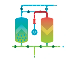 Adsorptionstrockner ohne Luftverbrauch mit Gebläse werden eingesetzt, wenn die Druckluftanwendung einen Drucktaupunkt unter 0° erfordert. Die regenerativen Adsorptionstrockner bestehen aus zwei Druckbehältern. Beide Gefäße sind mit Trockenmittel gefüllt. Ein Behälter entfernt Feuchtigkeit aus der Druckluft.
