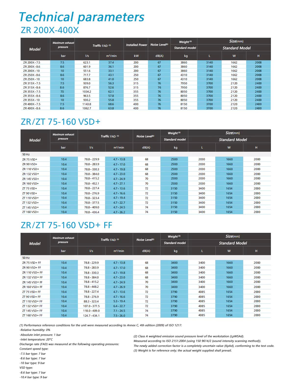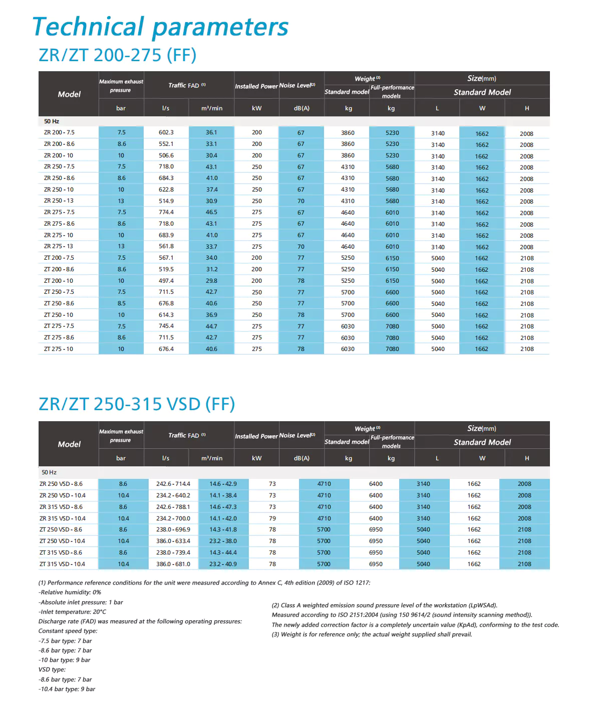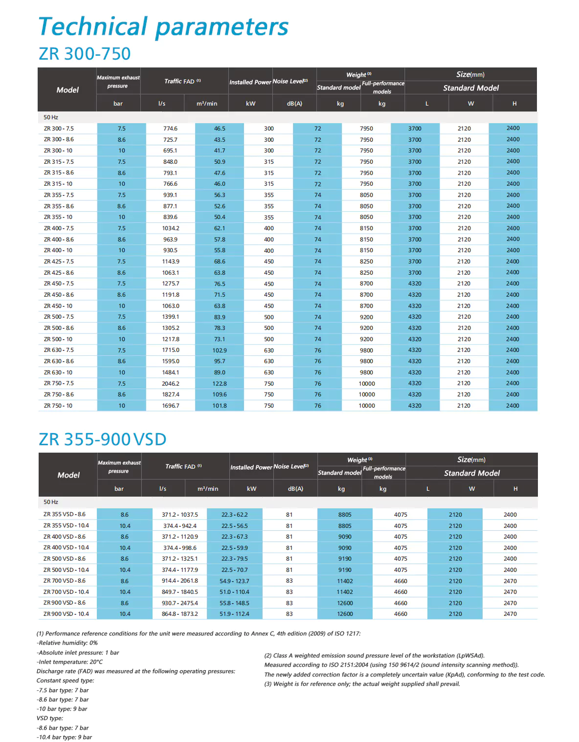 Ausgereifte ölfreie Z-Schraubentechnologie, wassergekühlte ZR-Modelle