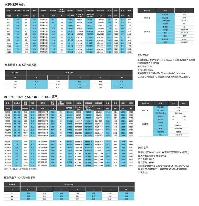 Abhängig vom Drucktaupunkt kann das Trockenmittel aus Aluminiumoxid, Kieselgel oder Molekularsiebmaterialien bestehen. Der niedrigste Drucktaupunkt kann -70°C erreichen.