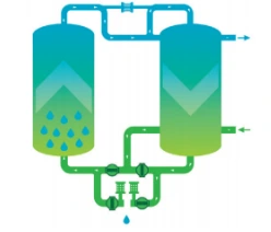 Während sich ein Turm im Adsorptionsmodus befindet, befindet sich der andere im Regenerationsmodus. Das Regenerationsgas benötigt einen gewissen Anteil an fertiger Druckluft.
