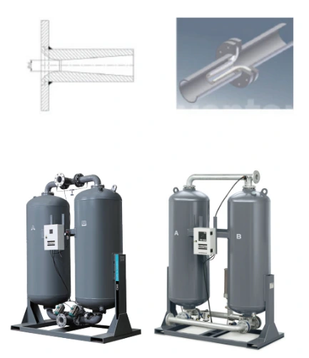 Während sich ein Turm im Adsorptionsmodus befindet, befindet sich der andere im Regenerationsmodus. Die Regeneration des Adsorptionsmittels verbraucht Wärme von einer elektrischen Heizung und eine kleine Menge fertiger Druckluft.