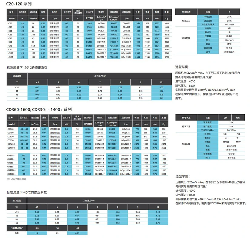 ■ Der kaltregenerierende regenerative Adsorptionstrockner der C-Serie eignet sich besonders für Anwendungen mit kleinen Luftmengen.